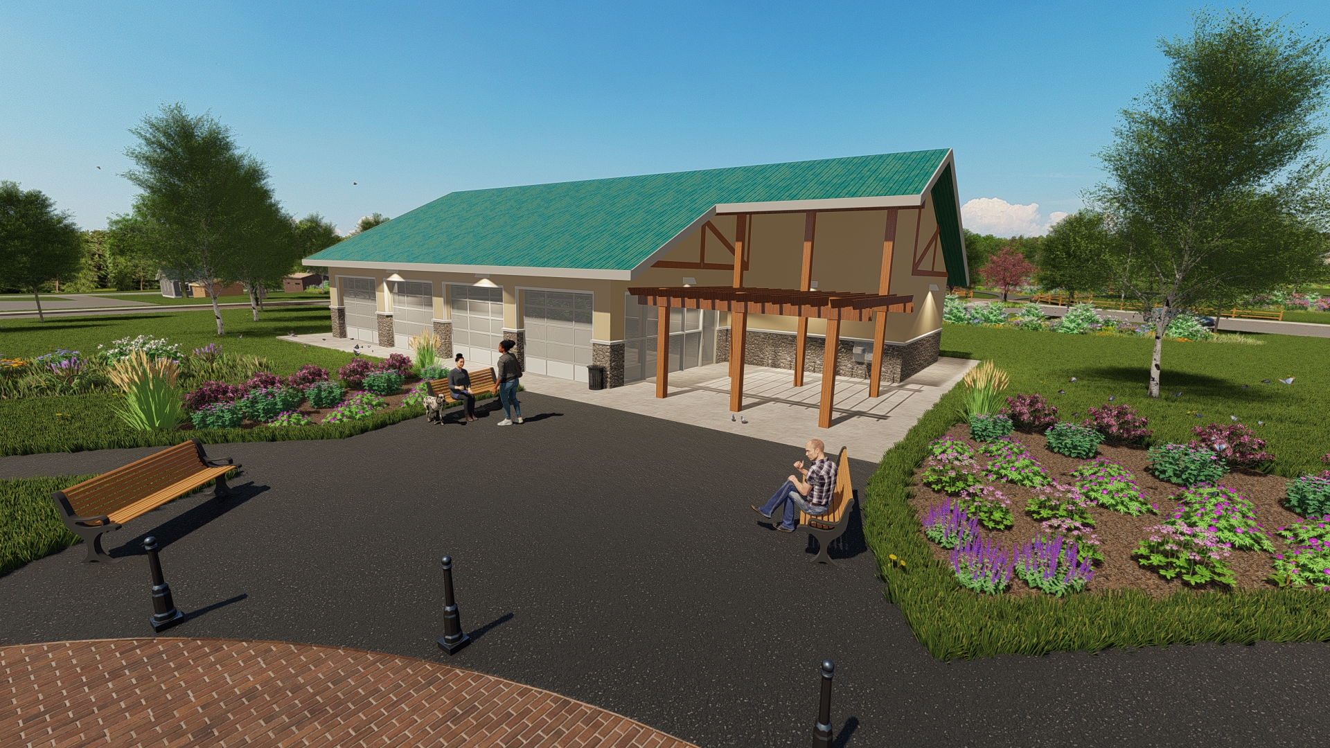 A series of visible landscape features that capture, clean, and reuse stormwater runoff will be incorporated into the design. Green infrastructure elements, including rain barrels, permeable paving, and rain gardens will be featured, as well as native plantings, pollinator gardens, and meadows.